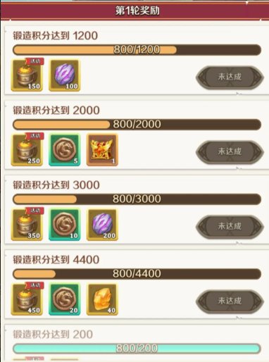 比如锻造为十连抽200积分,奖励第一个道具一般为活动专属货币,兑换当期内不同的奖励,我个人只推荐