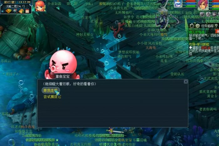 另一个,沉船二层34.7有一只章鱼宝宝,对话给几个包子然后抓捕,获得了第二只召唤兽之后正常走主线击杀