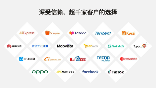 Adwin 旗下坐拥 2 亿用户的自有矩阵流量,外部合作开发者流量全球覆盖 3 亿用户。截止目前已服务 1000+ 家广告主和客户,囊括工具、电商、社交、游戏等各大品类,真正实现全行业资源覆盖。