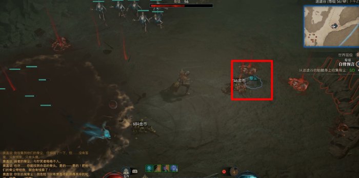 来到任务指定地点与奥盖交谈后,消灭骷髅收集3个骨尘。