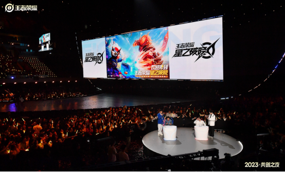 作为回馈,破晓还在2023共创之夜的舞台上,为全体王者粉丝奉上一份彩蛋,这便是由沈腾与檀健次、皮皮鲨与西君上演的精彩对决表演,以及新英雄“阿通”的首曝信息。