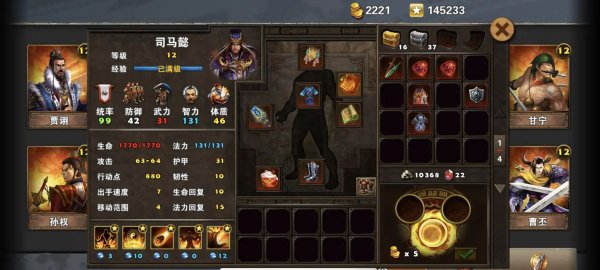 连动司马加血煞套典韦,辅助11出手速度曹操加10手速刘备即可。核心装备司马刘备曹操三选一带兵书或者典韦带骨链,因为这样第三关压力会小。