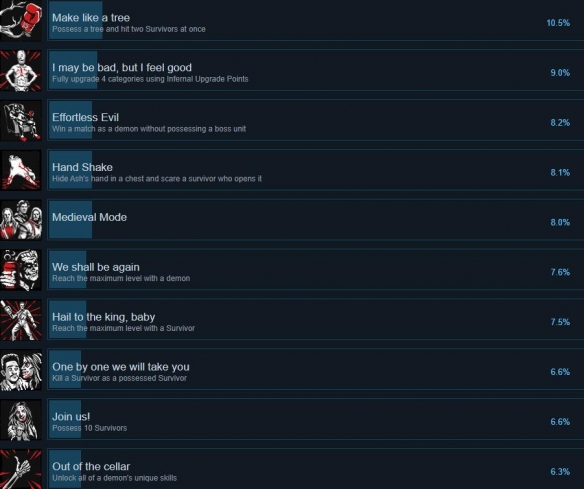鬼玩人游戏本作在steam平台已经正式发售,游戏里加上白金共有45项成就需要达成。比如救世主和毁灭者解锁条件是收集所有奖杯,死徒杀手解锁条件是杀死500个普通怪,只是在热身解锁条件是杀死50个精英怪,现在谁在笑解锁条件是杀死10个boss。