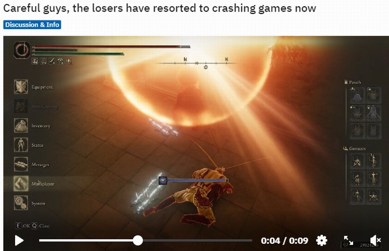 遗憾的是,目前似乎还没有解决黑客引发崩溃的方法,一些人建议断网或备份存档。此次事件也让《艾尔登法环》反作弊软件Easy Anti-Cheat的有效性受到质疑,该软件归Epic Games所有,也应用于《堡垒之夜》《糖豆人》中。