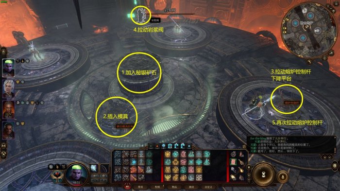 ⑧到达精金熔炉,在坩埚插入秘银矿石,在模具室插入想打造的模具,拉动熔炉控制杆下降平台,拉动岩浆阀,再次拉动熔炉控制杆,制造完成