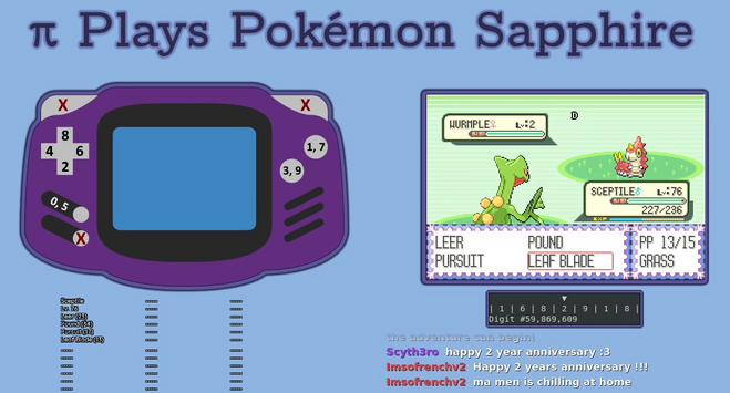 ·WinningSequence频道正在进行着这项奇葩看似毫无意义的挑战,将GBA掌机的所有按键除了L,R,Select外,都分配成0~9的数字,目的是按照圆周率的数字阵列按动按键操作《宝可梦:蓝宝石》游戏。