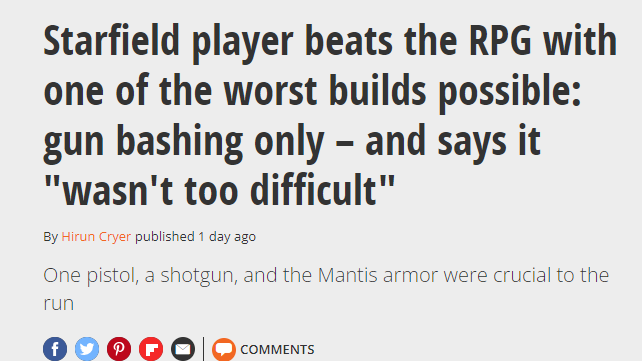 B社的大作《星空》相信玩家已经通关,开启了新一轮特别挑战,近日有高玩发起奇葩挑战成功, 有枪不用只用枪托攻击通关。