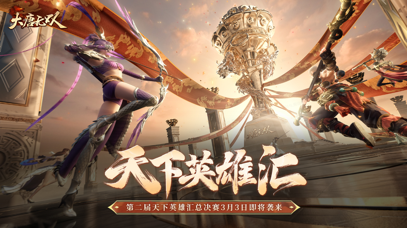 群雄逐鹿,名动大唐!作为汇聚天下顶尖高手的王者之战,《大唐无双》将于下周末3月3日迎来一场有关热血与梦想碰撞的年度盛会——第二届“天下英雄汇”年度总决赛!其中包含2023年首次登场的GVG赛事“龙行乱世”五大帮会总角逐,和历经多年全民热血鏖战的5v5经典赛事“天下英雄汇”四强终极较量。两大不同赛道,多名顶尖战队、顶级帮会即将踏上总决赛战场的舞台,为大家带来本年度最受瞩目的竞技!
