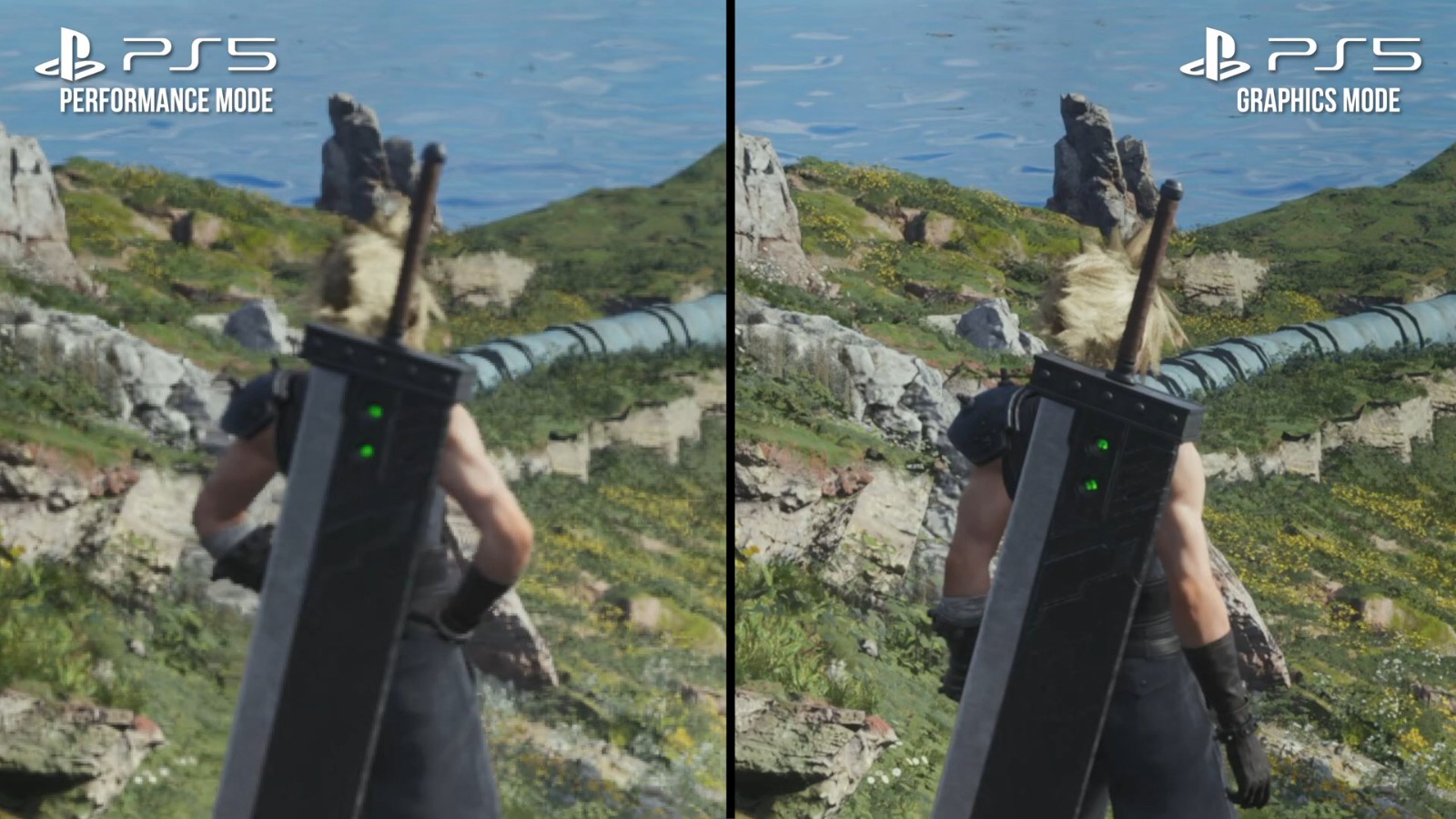 根据Digital Foundry的说法,在性能模式下,游戏运行分辨率在1152p左右,并且SE应用了一种看起来相当粗糙的最近邻插值技术,这使得图像更清晰,但同时也带来了丑陋的颗粒状像素化外观。最重要的是,性能模式无法完全稳定60帧,在更激烈的战斗中以及周围有大量NPC时,会下降到50帧左右。