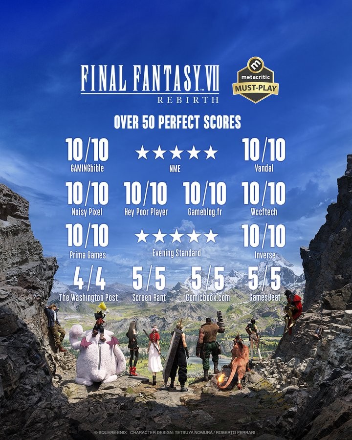 近日《最终幻想7:重生》官方在推特上公布了游戏的媒体赞誉图,从图中可以看到各媒体都给予了满分好评。官方还表示,希望玩家向朋友们推荐该作。