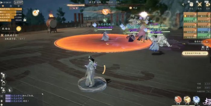 还有个机制需要几个红圈每个都踩上一个人,否则梁子翁会大量回血。当然这个机制有逃课办法,就是直接用禁疗技能。