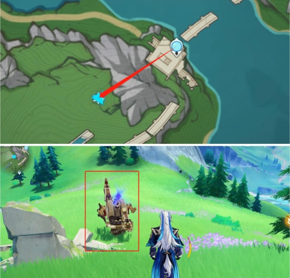 2.拿走营地发条机关前面的食物,就可以激活发条机关,激活后击败他;