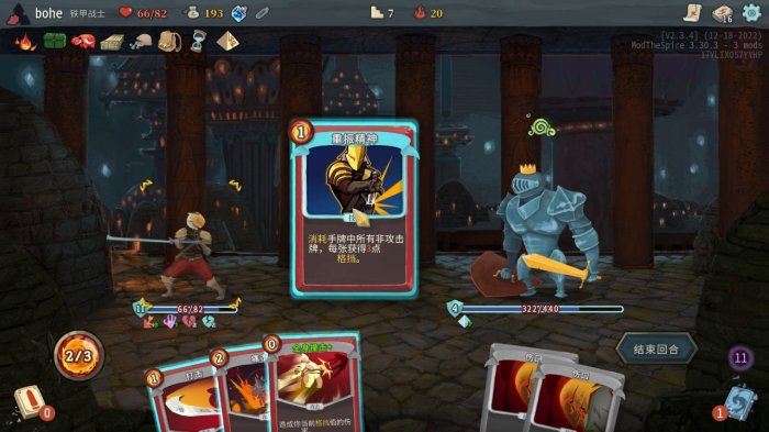 把牌组压缩到了不到十张,留下来关键的key牌,即重振精神,硬撑,全身撞击(肚皮)。