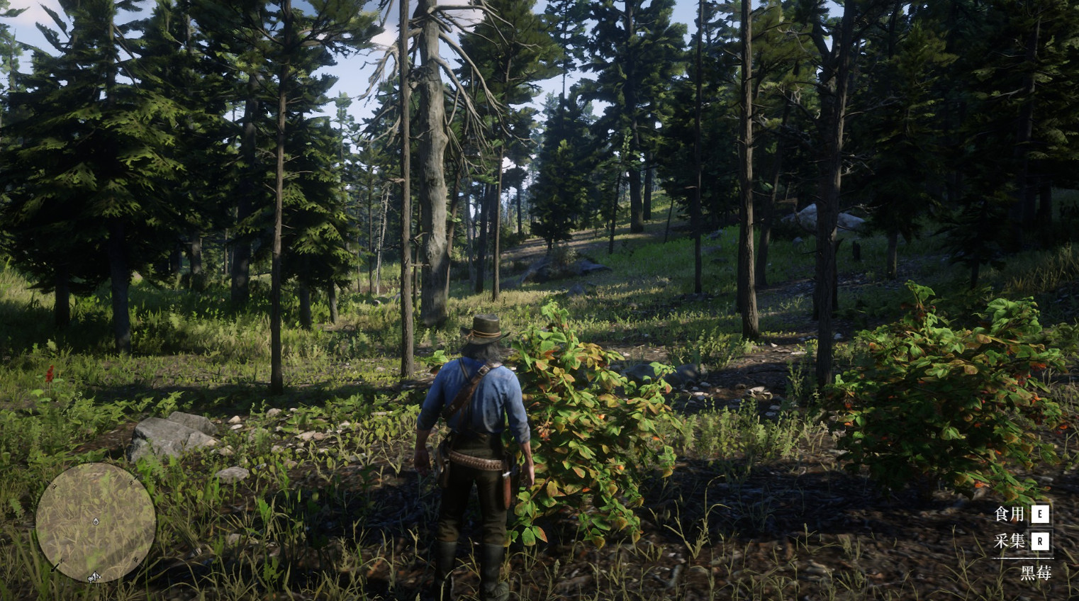 《荒野大镖客2》中的挑战任务是非常多的,草药大师挑战就是其中比较难做的,而草药大师挑战2就是里面很难搞的一个,挑战的要求是采摘并食用4种浆果(莓),三种可在瓦伦丁左方,下图标记处找到,冬青果很小,需要使用鹰眼才好发现。