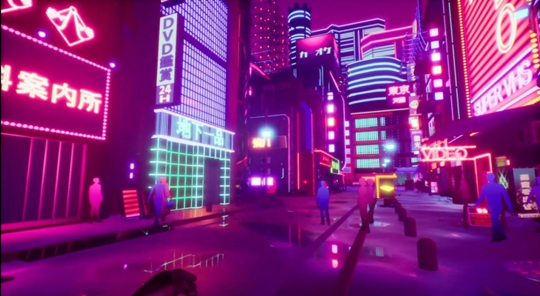 游戏采取了鲜艳浓烈的视觉风格,光源与雾气混合后的晕染,强烈的明暗对比,外加遍布城市的“无料案内所”“DVD地下鉴赏室”“ZIGA街机厅”的巨幅霓虹招牌,共同将近未来东京压抑与狂放并存的“赛博朋克感”,体现得淋漓尽致,让人仿佛亲自置身于空气污浊噪声灌耳的未来版歌舞伎町。