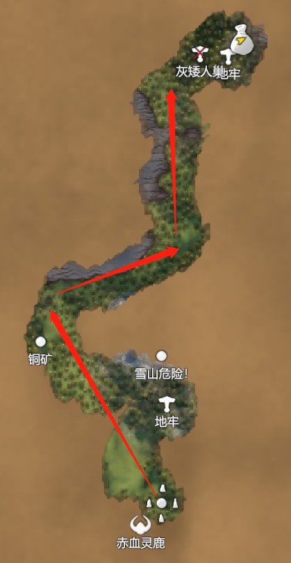 进入黑暗森林不远就能看到↗东北方向钱袋图标,